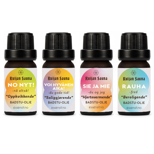 OBS: Badstuoljene må alltid blandes ut med vann. Oppbevar ikke badstuoljen veldig varmt, da toppen av plast kan smelte. Unngå kontakt med huden. Farlig å drikke. Meget brannfarlig. Oppbevares utilgjengelig for låve. Sørg for god ventilasjon.